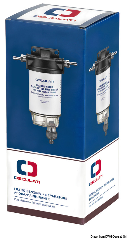 Testa in alluminio, vaschetta trasparente, spurgo con sistema rapido. Consigliato per motori fino a 200 HP - Equivalente Yamaha 2W-114-00-00. Completo portagomma 8 mm.
