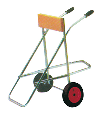 Cavalletti portamotore massimo 25 HP pieghevoli con ruote gonfiabili Ø mm. 250 e portaserbatoio,tavoletta in legno larg. mm. 320 x 145, altezza mm. 900, portata massima Kg. 50