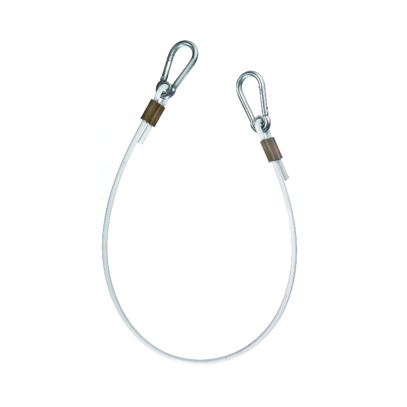 Cavetto di sicurezza in acciaio inox rivestitoin plastica, munito di un moschettone inoxalle estremità, per motori fuoribordo, fino a25 HP. Lung. mm. 600