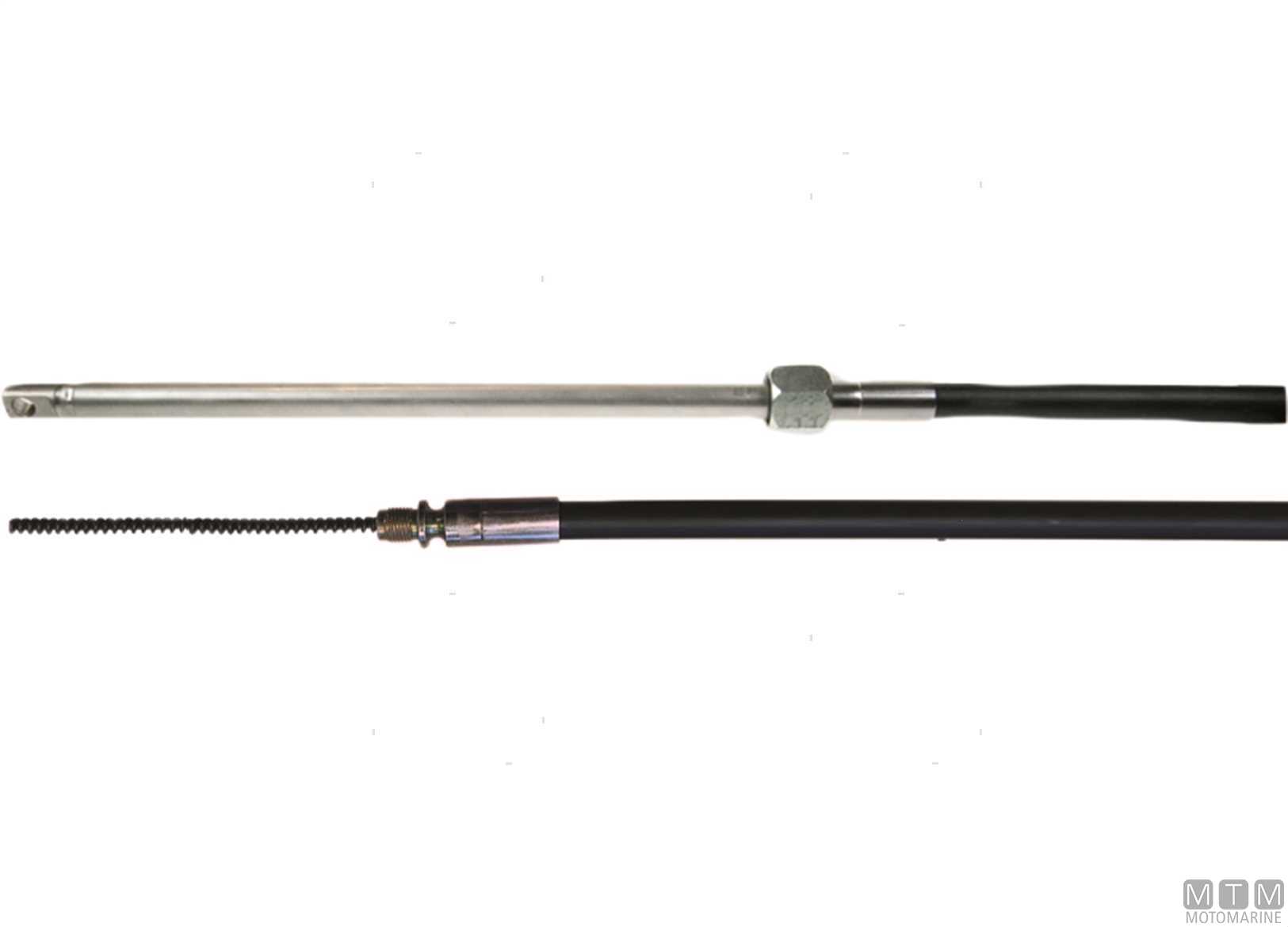 Cavo di comando tiro/spinta T01 per timonerie meccaniche Riviera MD45. Con terminale guaina filettato, raggio di curvatura 200 mm, corsa 224 mm e diametro guaina 14 mm. Attacco compatibile con le altre timonerie meccaniche in commercio.