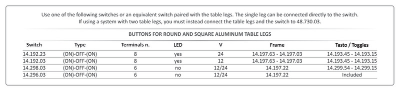 Gamba tavolo tri-telescopica rettangolare 24V all.