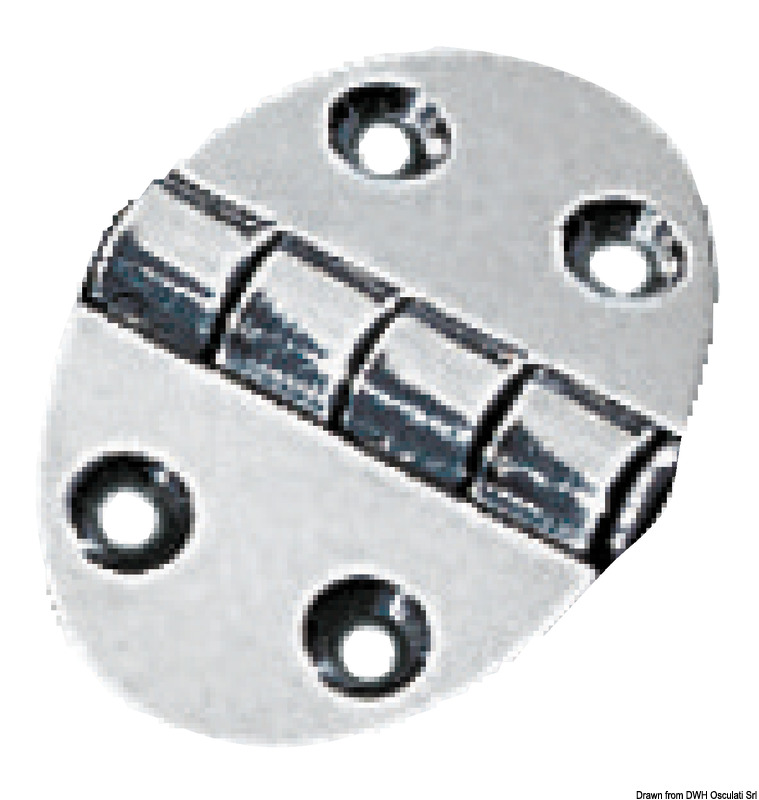 Cerniere in acciaio inox lucidato a specchio Serie OVAL TYPE. Asse di centrale semi-incassato, apertura 270°.