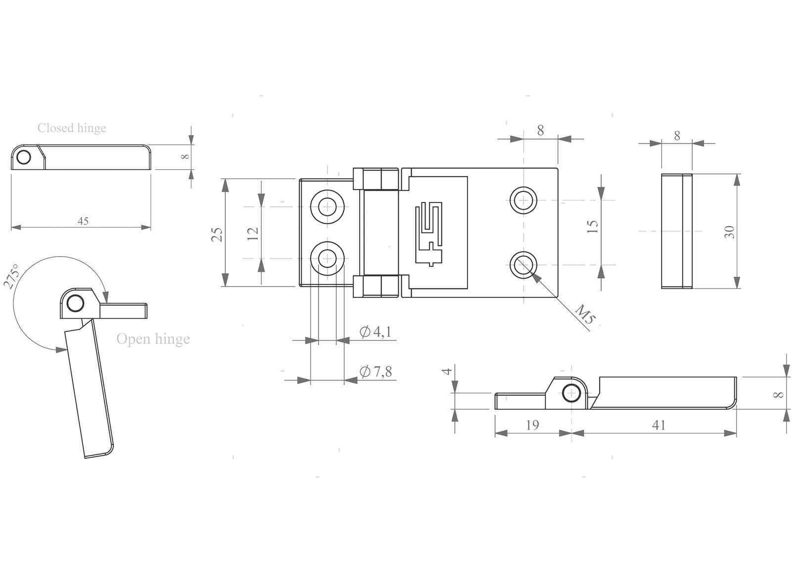 Cerniera Robusta 5 mm in Acciaio Inox Sporgente