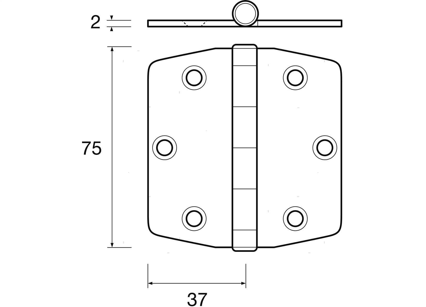 Cerniera a biscotto grande in Acciaio Inox Extracrome con angoli squadrati.