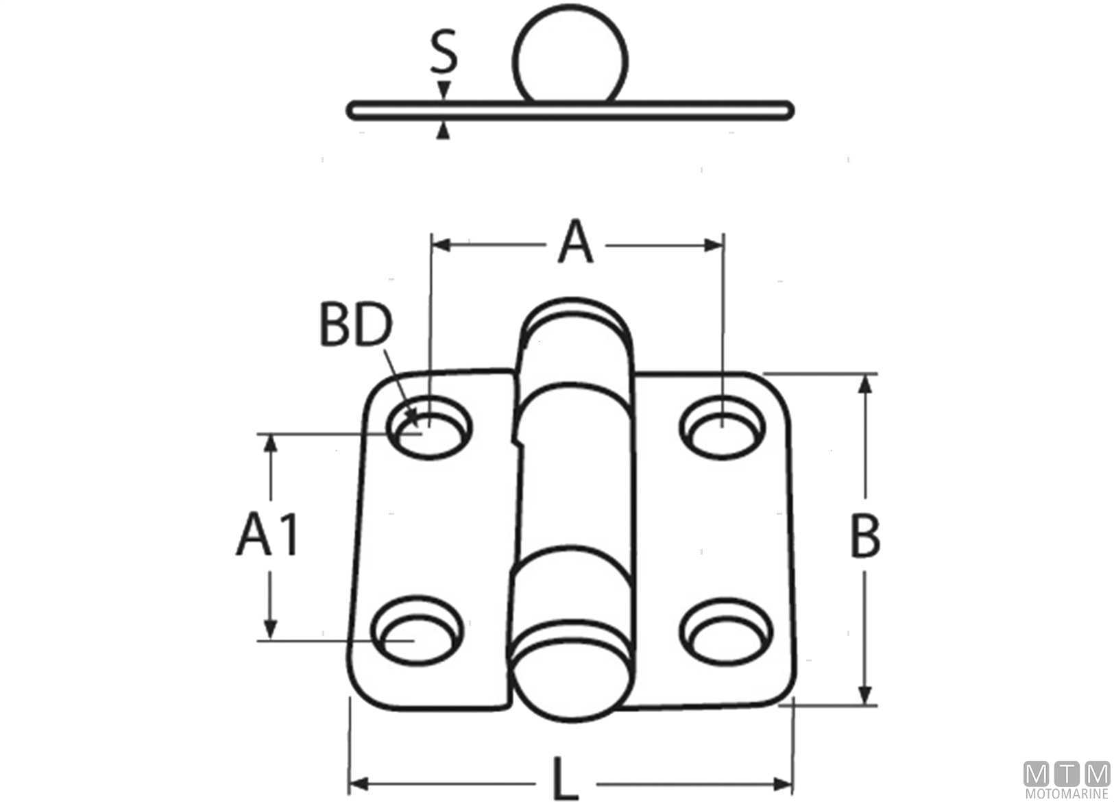 Cerniera in Acciaio Inox 316 con copertura mm. 76x37 perno Semincassato