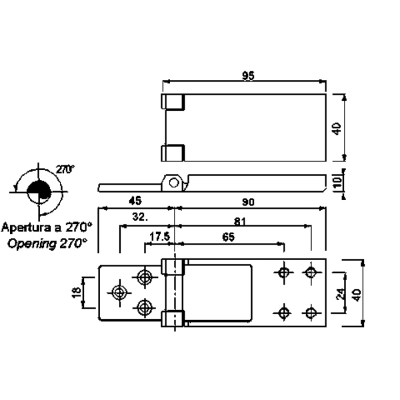 Cerniere a filo in acciaio inox lucidate a specchio. Dim. mm. 95 X 40