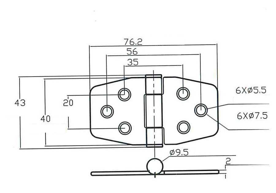 Cerniere a frizione in acciaio inox AISI 316 spessore mm.2, perno Ø mm.9,5. Permettono il controllodell’apertura dello sportello su cui sono montate