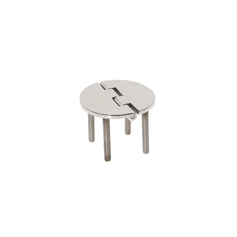 Cerniera in acciaio inox AISI 316 lucidata specchio, nodo rovesciato, apertura 95°,fissaggio con prigionieri. Ø mm. 65,spessore 4 mm