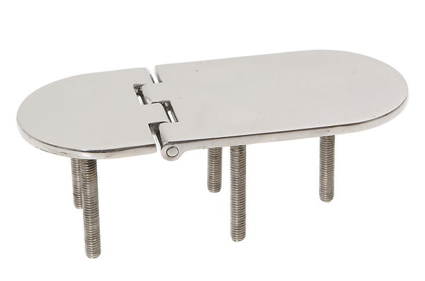 Cerniere in acciaio inox AISI 316 lucidate a specchio, nodo rovesciato, apertura 95°,fissaggio con prigionieri, lungh. mm. 145 x 65,spessore 4mm