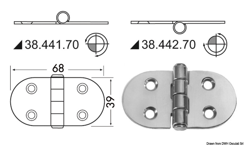 Cerniera Nodo Sporgente in Acciaio Inox 68x39 mm