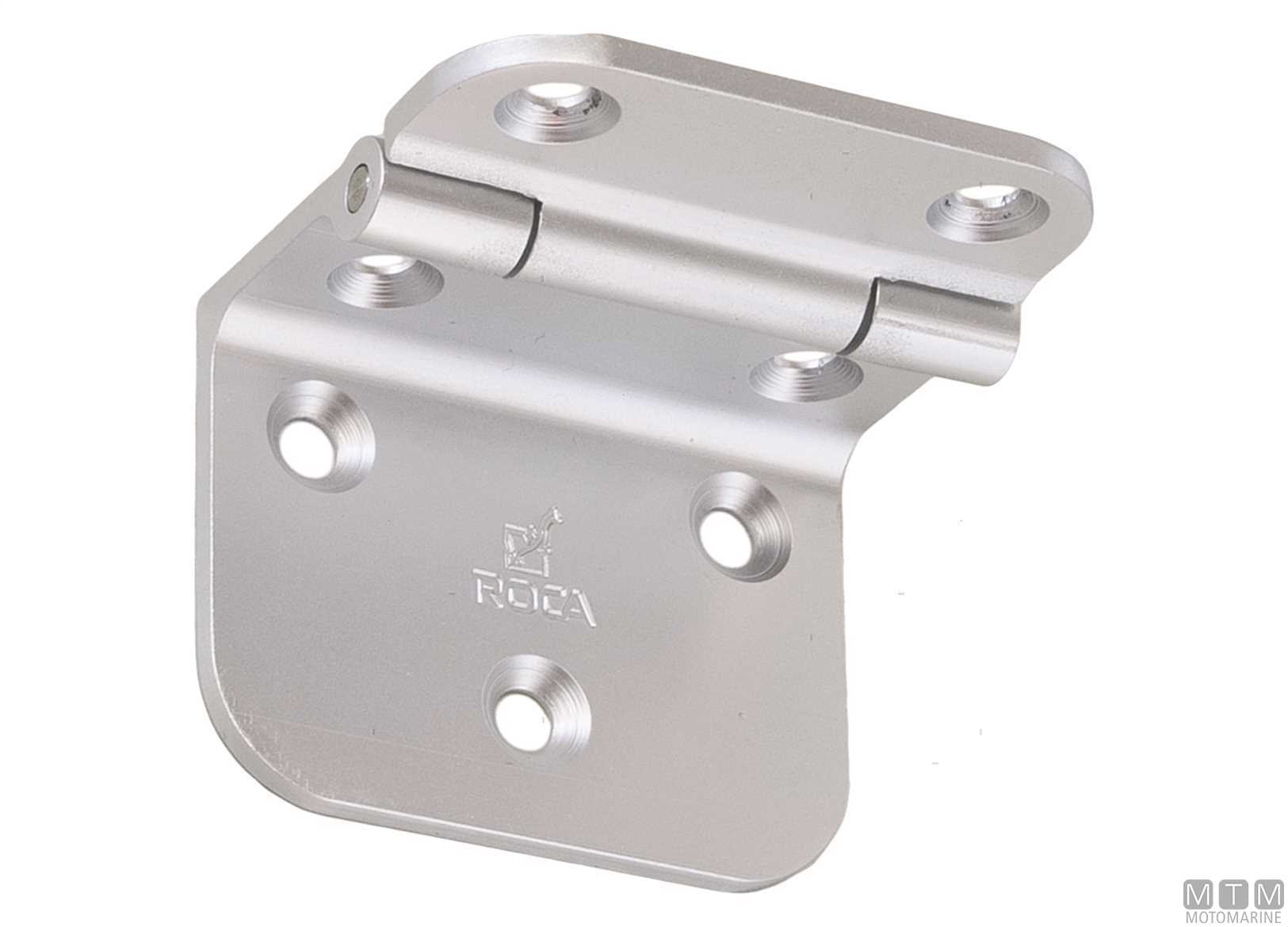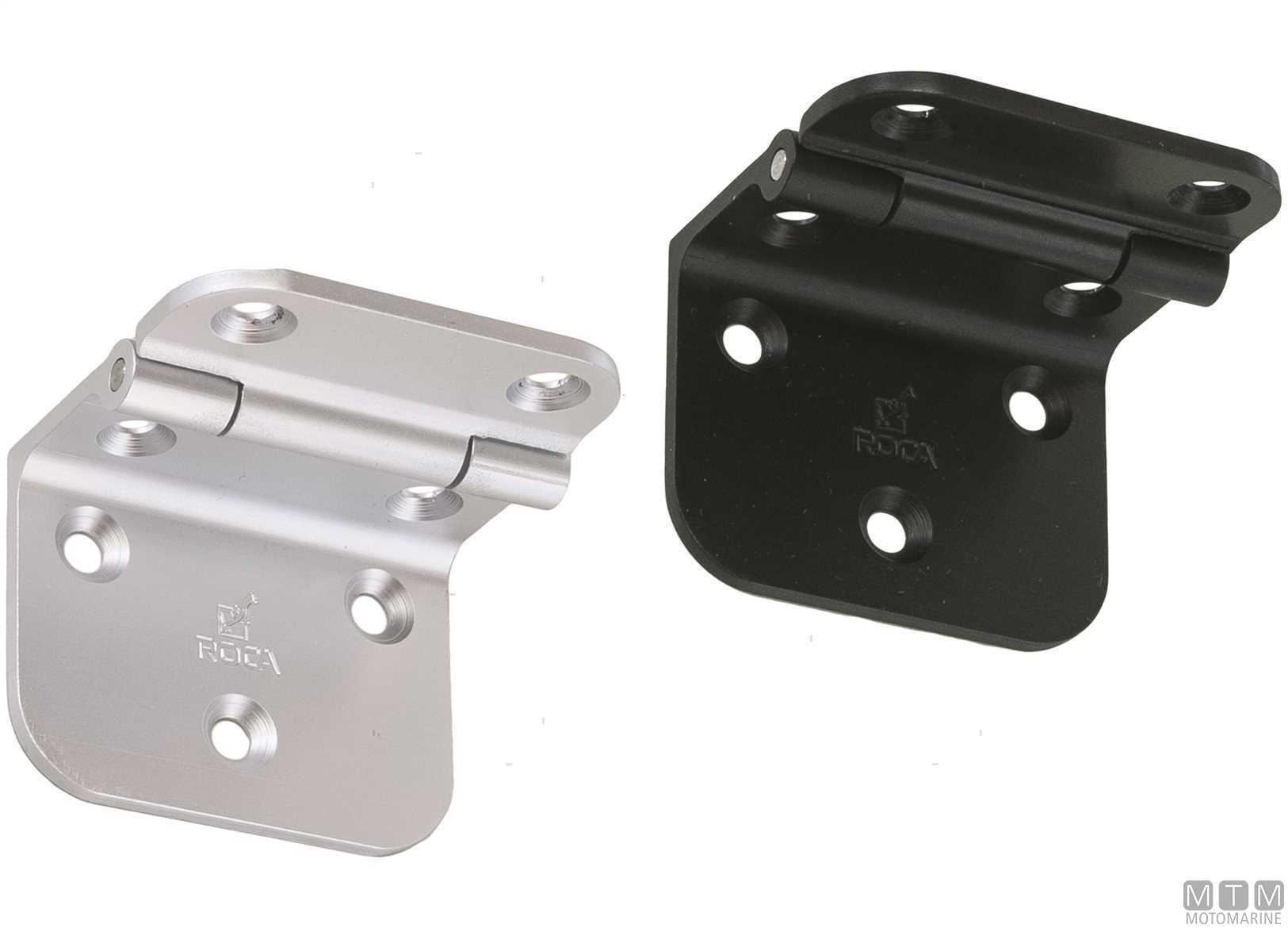 Cerniera per mensole Roca Rakego in Alluminio Anodizzato Satinato oppure Anodizzato Nero. Ideale per l'installazione di mensole abbattibili e piani tavolo.↵Completa i supporti abbattibili Rakego.