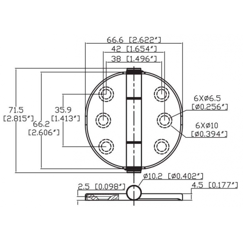 Cerniera in Acciaio Inox 316 con Copertura mm 66,6x66,2