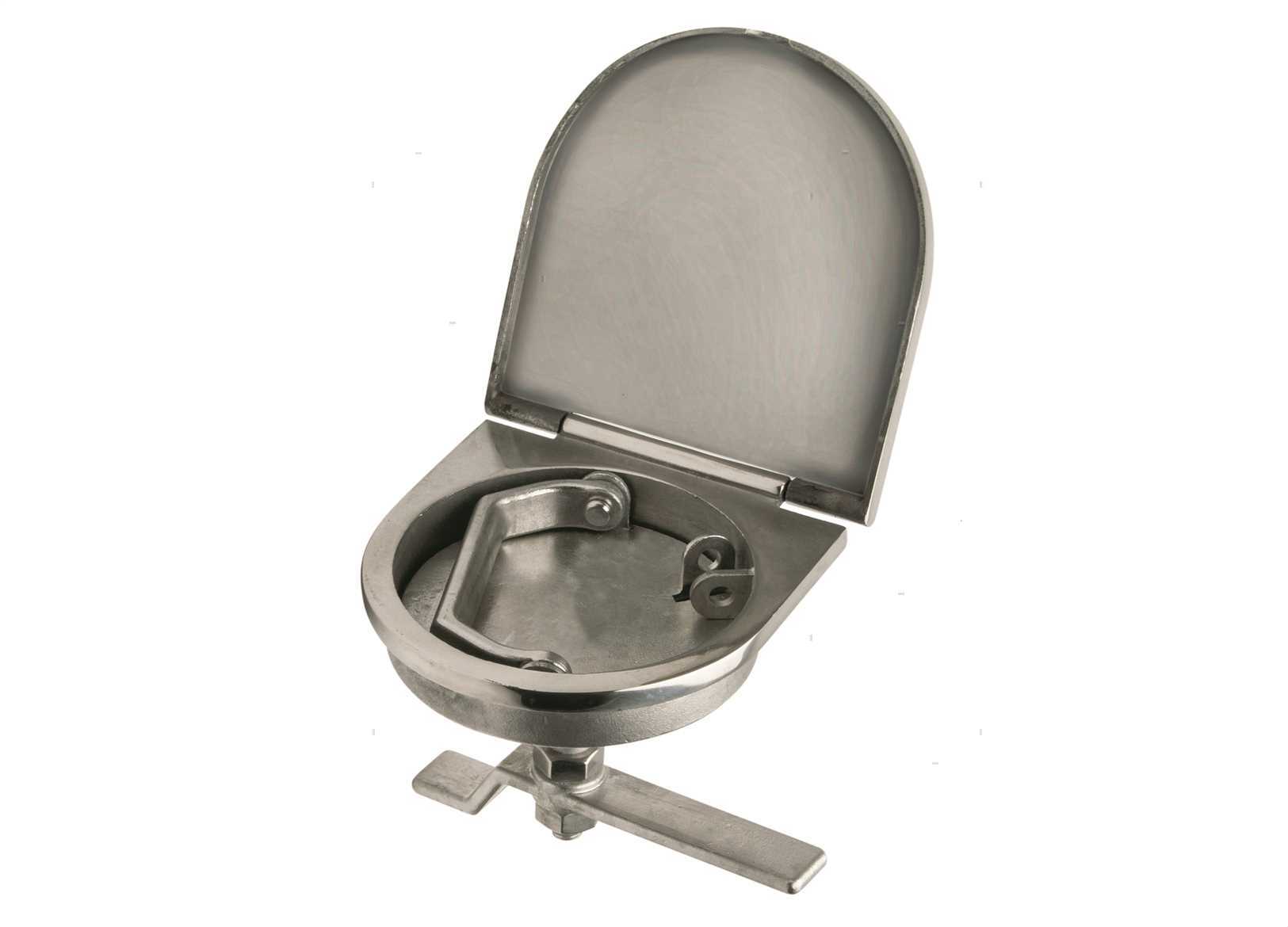 Chiusura a compressione in Acciaio Inox AISI316 con copertura a filo. Tavella regolabile per aprire e chiudere paglioli e boccaporti.