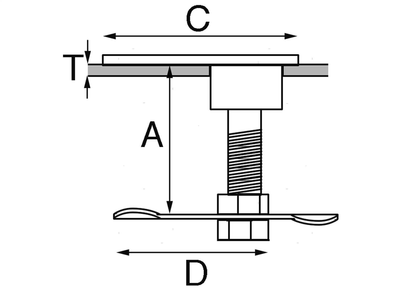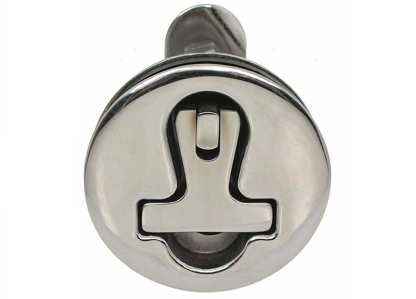 Chiusura a compressione tonda in Acciaio Inox con tavella regolabile. Piastra a vista senza fori vite, montaggio con viti dall'interno. Per aprire e chiudere paglioli e boccaporti.