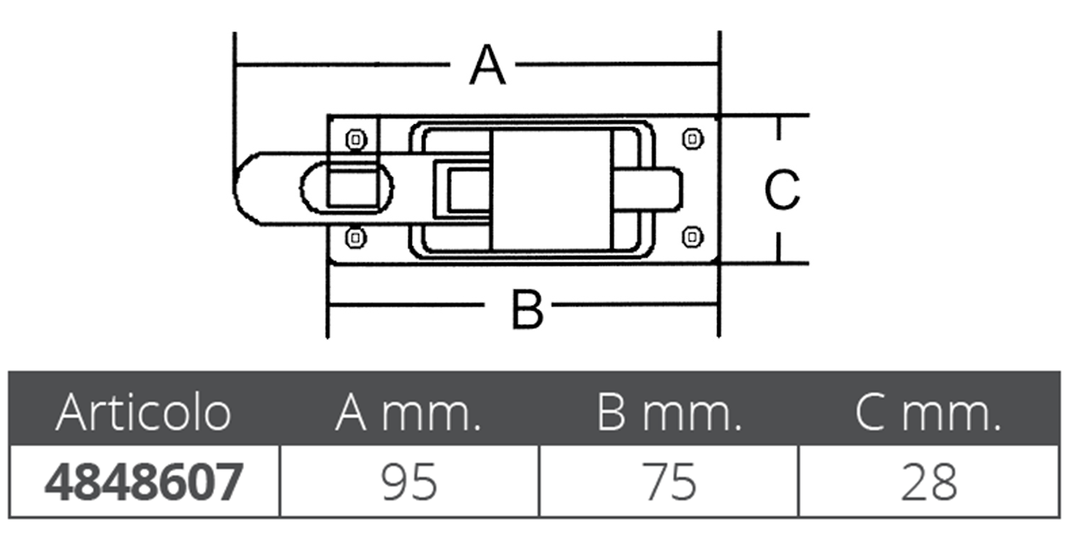 Chiusura in acciaio inox aisi 316, dim. mm 95 x 28