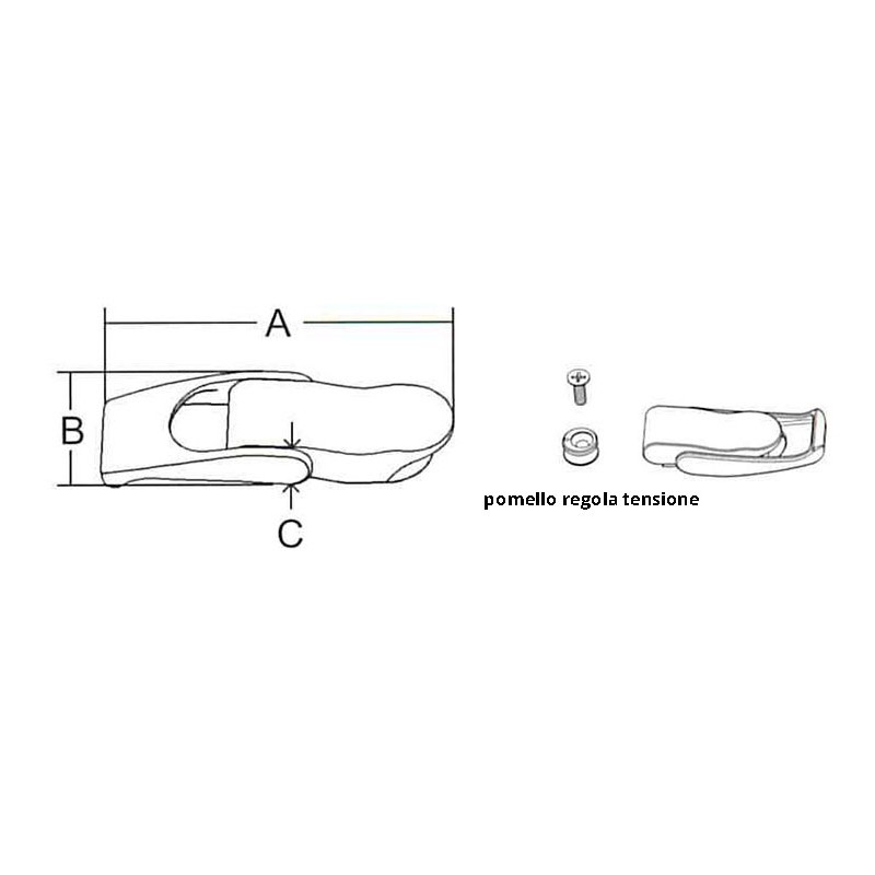 Chiusurain acciaio inox AISI 316. La tensione di arresto può essere regolataruotando il pomello di fissaggio