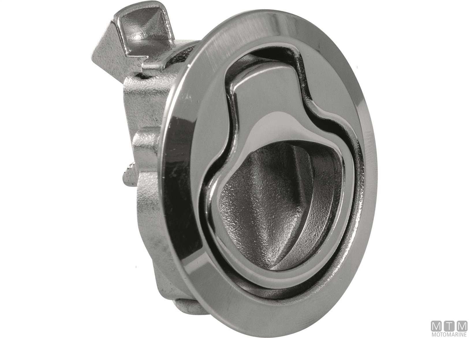 Chiusura a spinta Roca per portelli e paglioli con montaggio a incasso. Corpo in Acciaio Inox AISI 316 lucidato a specchio con componenti antivibranti.