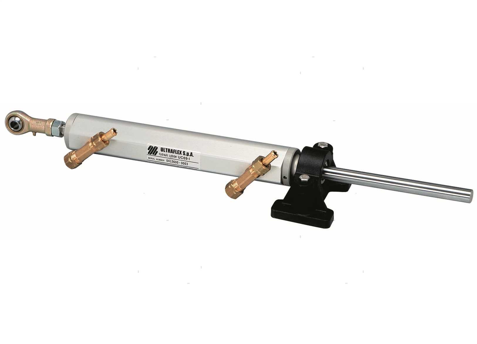 Timoneria idraulica Ultraflex con testa a snodo sferico per barre timone per imbarcazioni fino a 9 metri. Elementi da ordinare separatamente: ↵↵1 Pz- Cilindro UC69 con momento torcente massimo 32 Kgm ↵1 Pz- Pompa UP20F con valvola NR (3,5 giri volante banda/banda con cilindro UC69) ↵2 Cp- Raccordi per tubo 5/16 ↵2 Lt- Olio idraulico ↵Tubo idraulico 5/16 a confezione