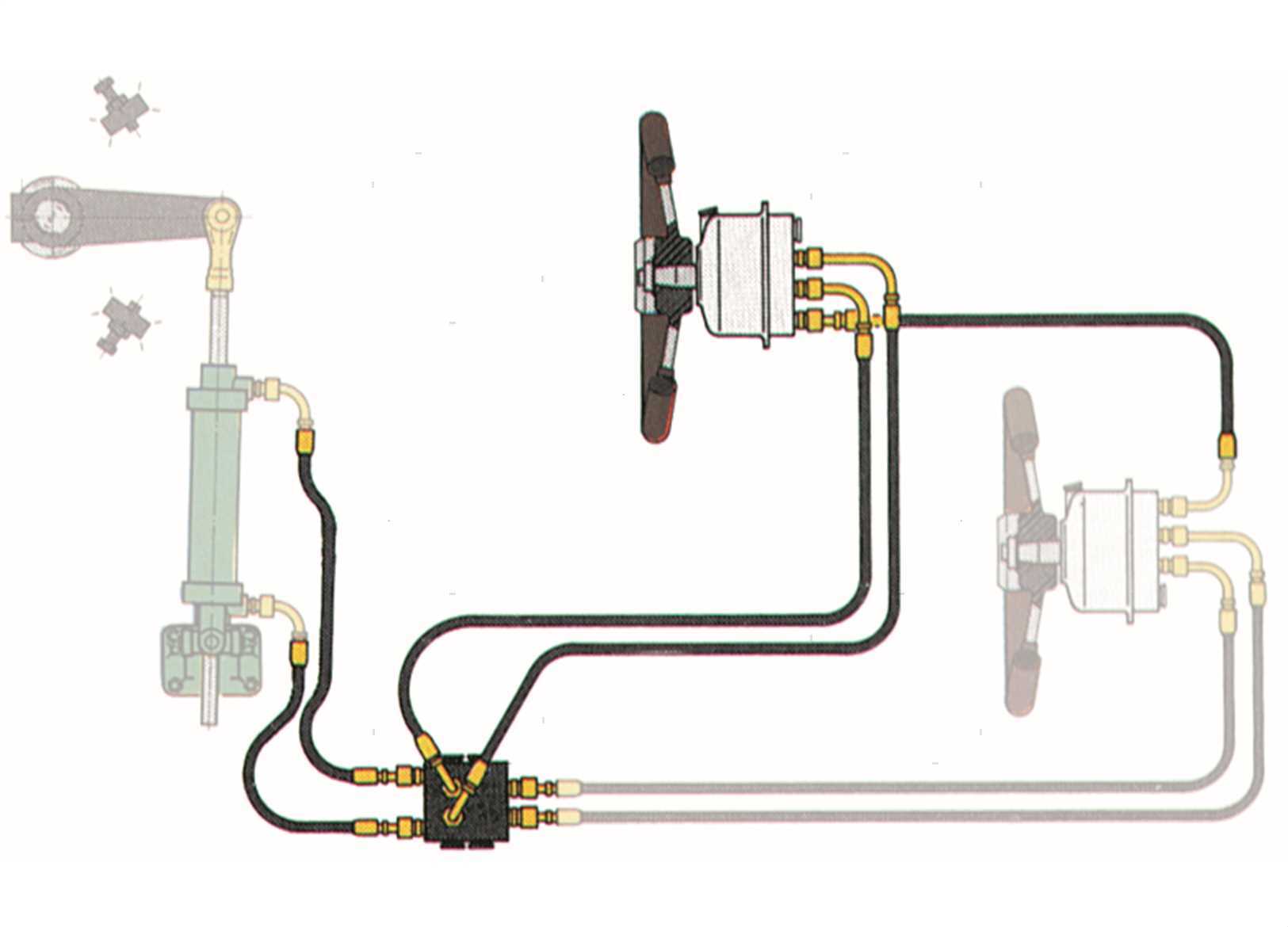 Timonerie idrauliche per imbarcazioni da lavoro. Cilindro completo di tubo flessibile con attacchi filettati femmina 1/2" per essere raccordati su tubi di rame 18x15 mm. Va scelto in base al momento torcente massimo del timone. Pompa con raccordi filettati femmina 1/2" e alberino in Acciaio Inox da 1"/25 mm. Va scelta in base al numero di giri che dovrà fare la ruota timone da banda a banda. I valori indicati in tabella sono i giri della ruota timone per ogni cilindro abbinato alla pompa, in ordine di grandezza a partire dal più piccolo.