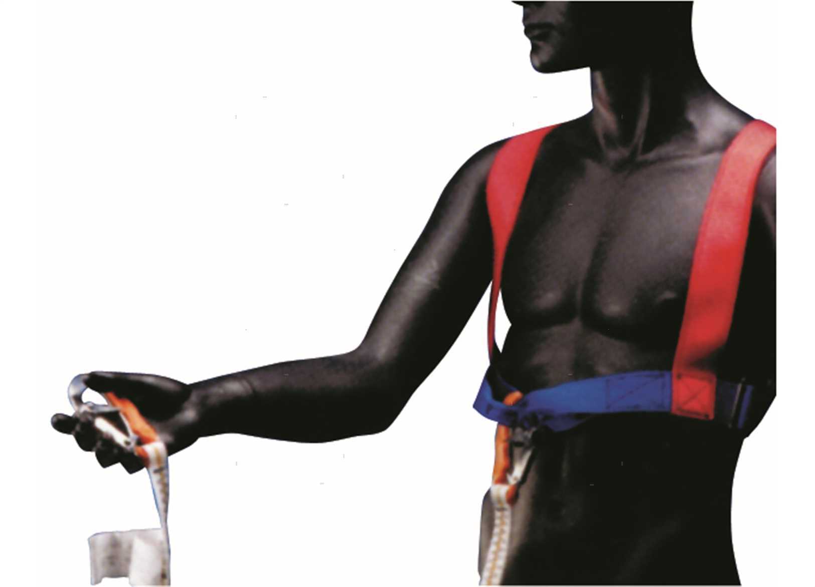 Cintura di sicurezza in cinghia di Poliestere alta resistenza con ferramenta in Acciaio Inox. Spallacci fissi e regolazione in vita. Completa di cinghia di aggancio con moschettone in Acciaio Inox.