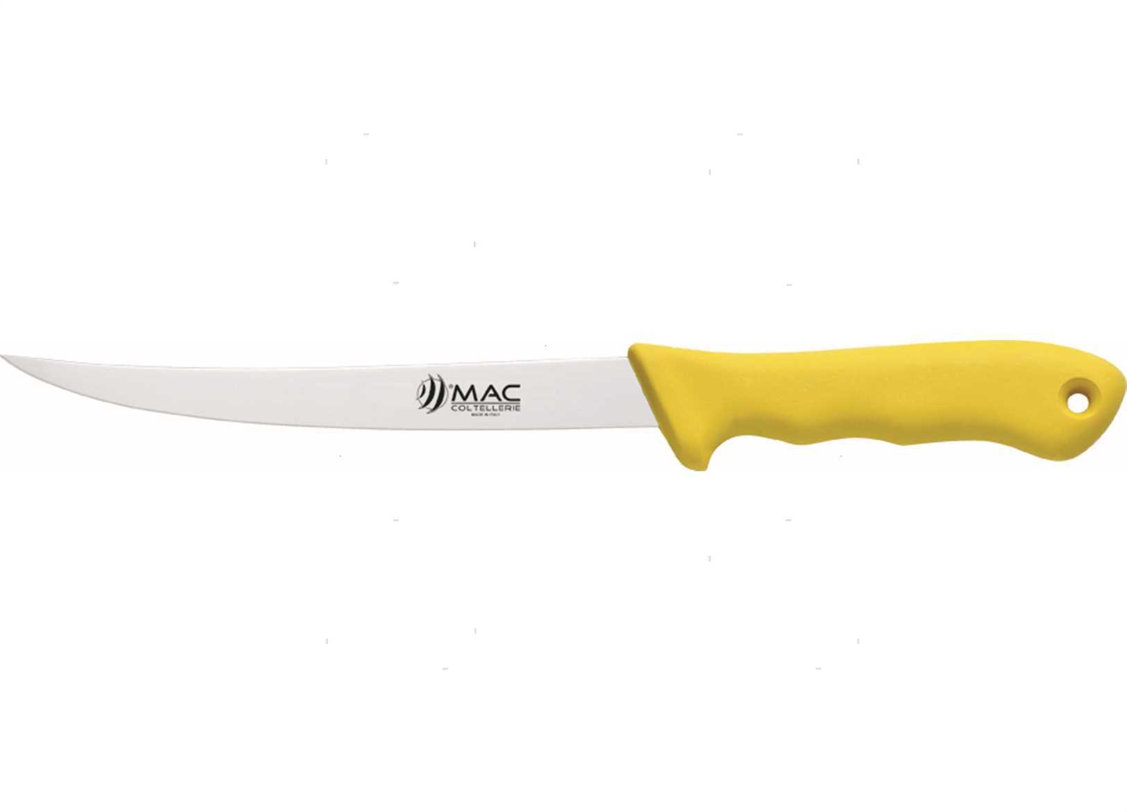 Coltello per la sfilettatura e la preparazione del pesce. Completo di fodero. ↵Manico in PP, lama in Acciaio Inossidabile W1.4034.