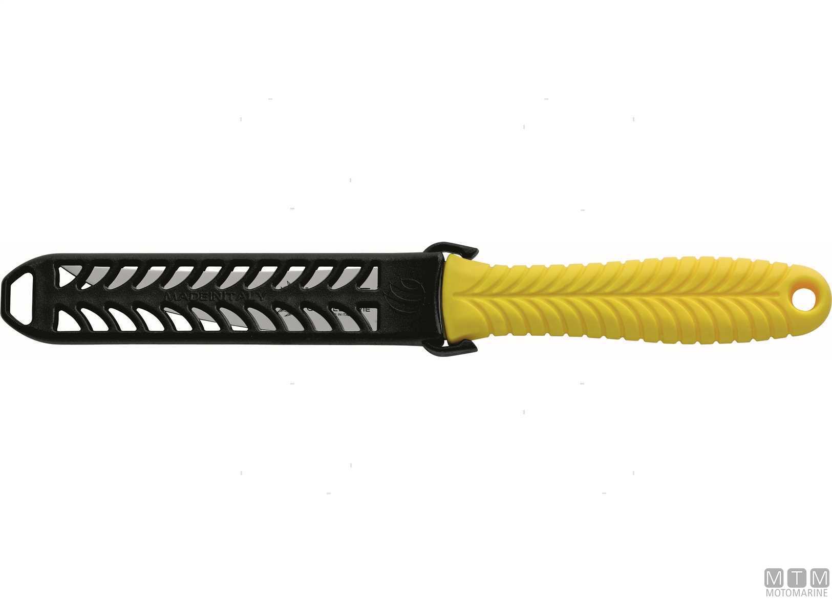 Coltello per la sfilettatura e la preparazione del pesce con squamatore. ↵Completo di fodero. Manico in PP, lama in Acciaio Inossidabile W1.4034.