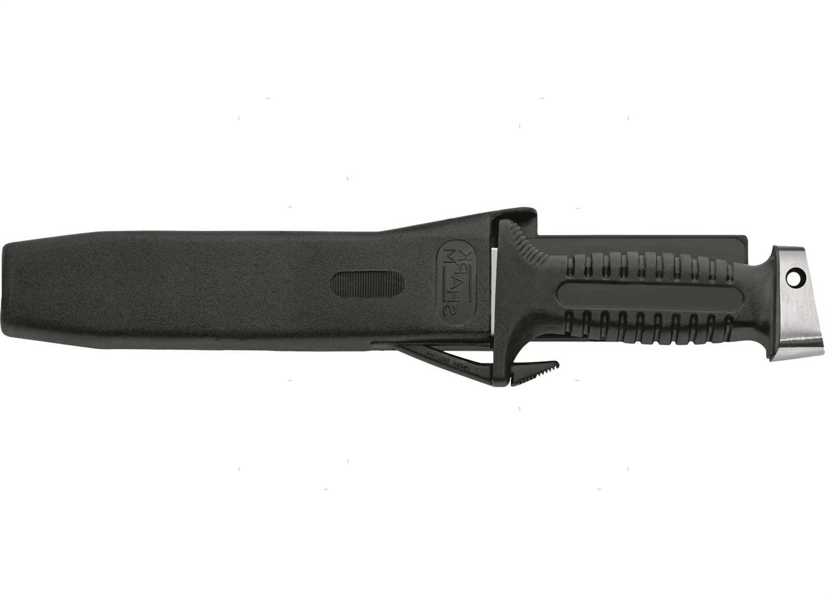 Coltello Sub professionale con tagliaspago e martello su manico. Completo di fodero e cinghie. Lama in Acciaio Inossidabile W1.4116. Dopo l'uso sciacquare la lama con acqua dolce e ingrassarla.
