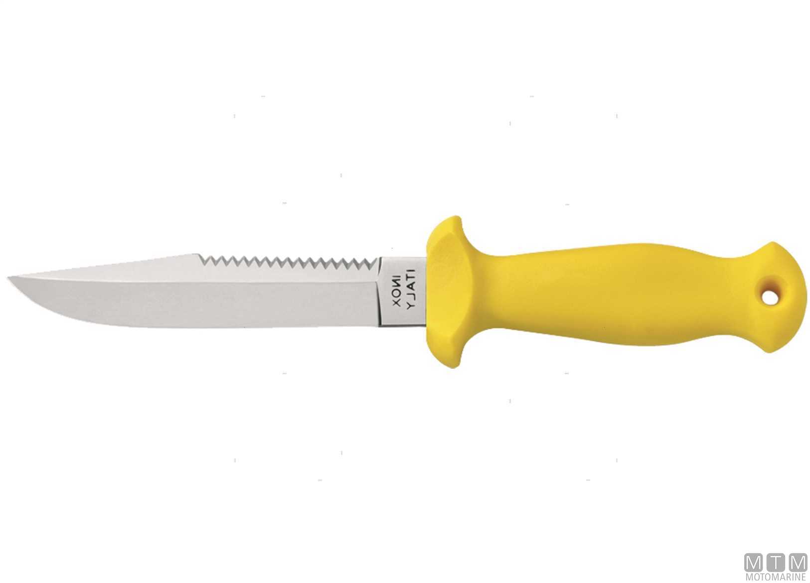 Coltello Sub compatto classico. Completo di fodero e cinghie. Lama in Acciaio Inossidabile W1.4116. Dopo l'uso sciacquare la lama con acqua dolce e ingrassarla.