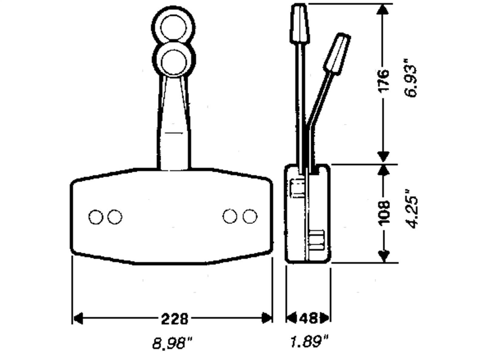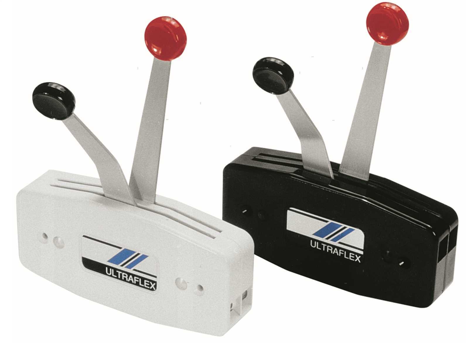 Comando bileva a montaggio esterno a paratia per il controllo di gas e marce di motori fuoribordo. Con il kit K25 utilizzano cavi C2 / C7/ C8 / MACHZero. Con il kit K23 utilizzano cavi C14. Senza alcun kit utilizzano cavi C5.