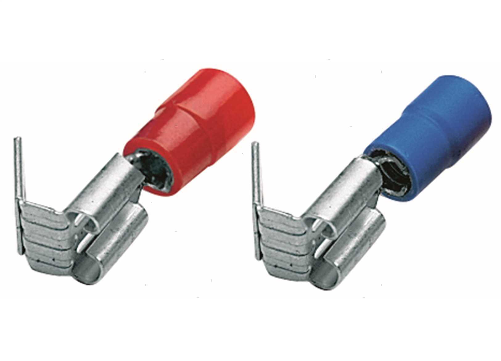 Connettori ad innesto maschio-femmina preisolati in PC ad introduzione facilitata per cavi in Rame. Protetti contro la corrosione mediante stagnatura elettrolitica, privi di alogeni.