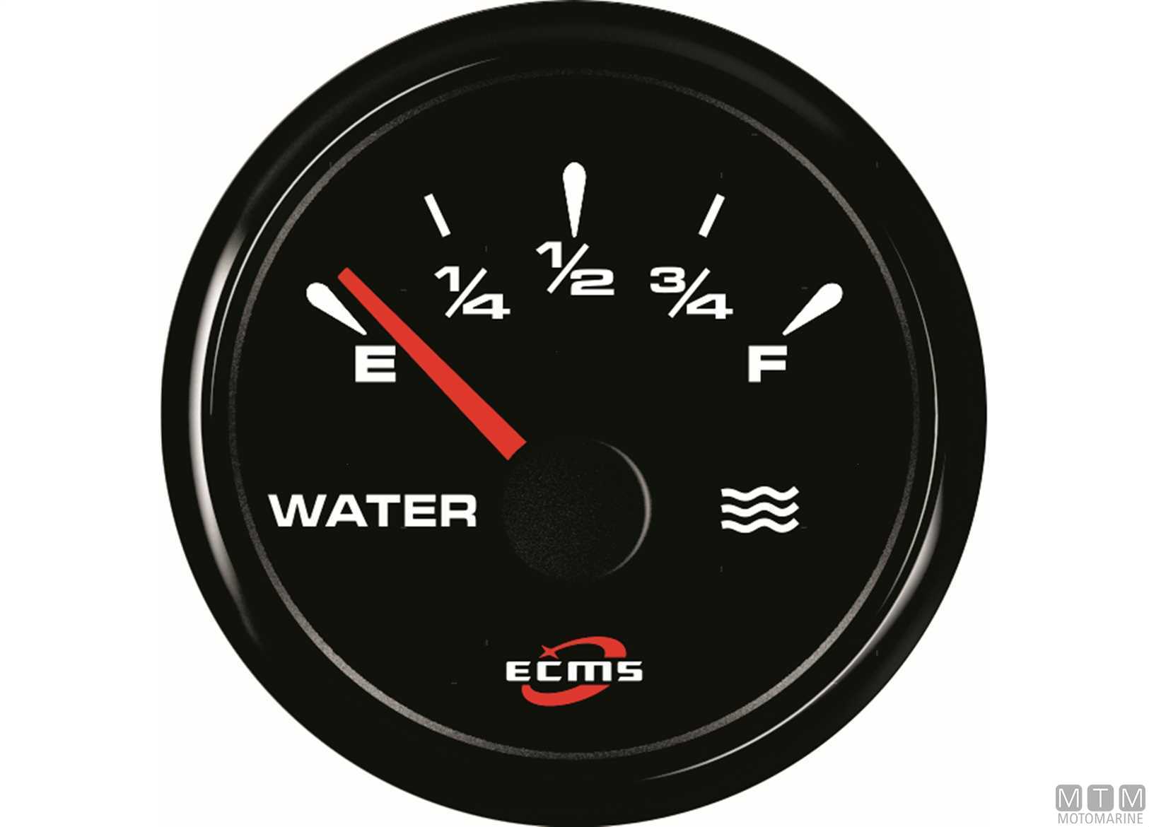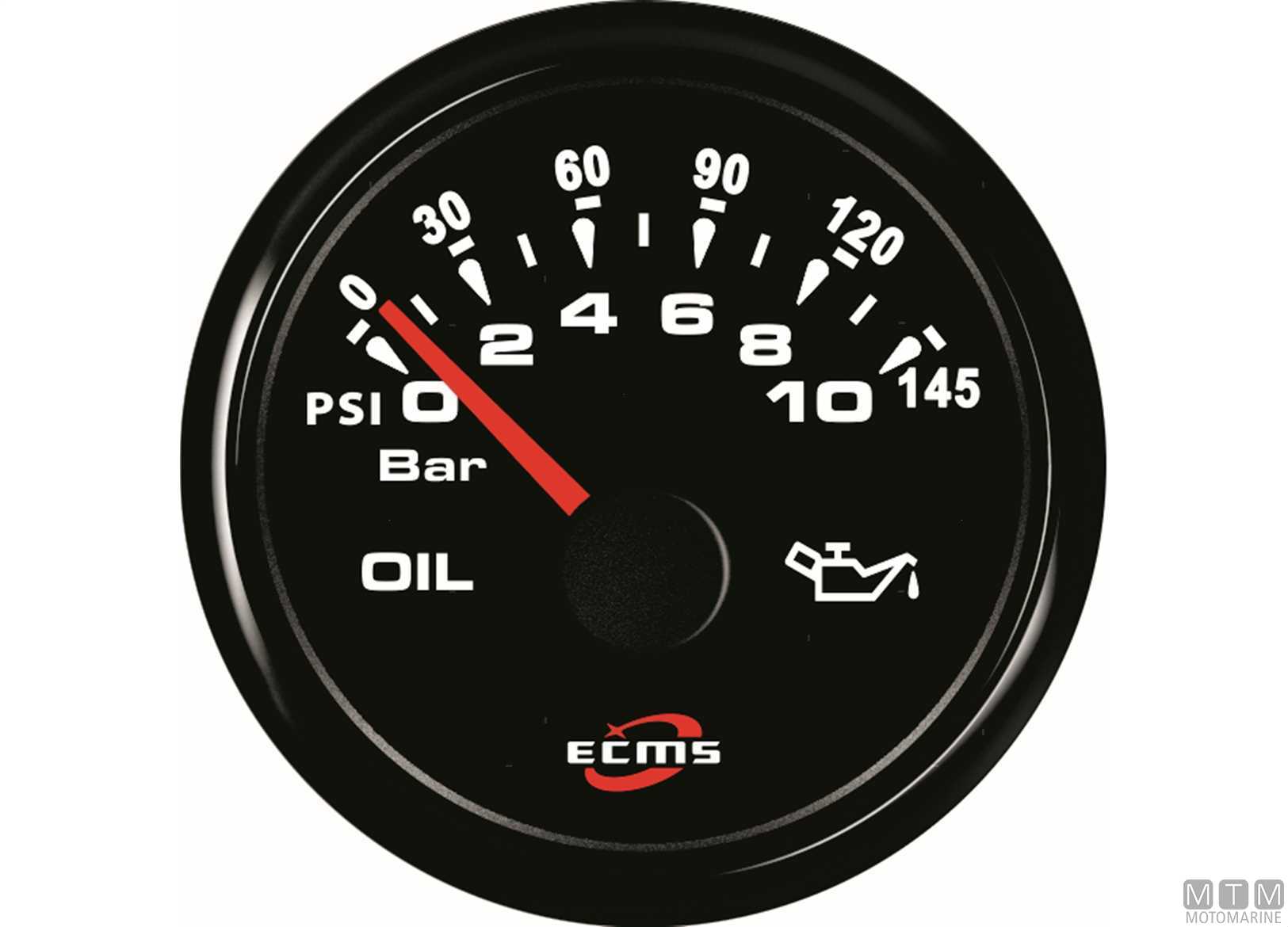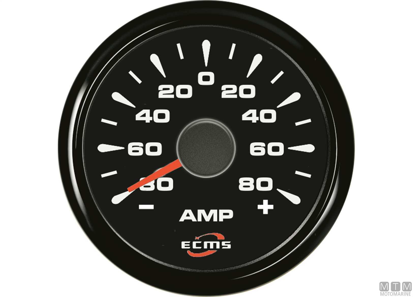 Strumentazione Ecms All Black 9-32V completa di cavetti con connettore Molex, cornice in Acciaio Inox 316 con finitura nera e frontalino impermeabile IP67 con lente bombata anti-appannamento. Quadrante retroilluminato con luce LED personalizzabile in vari colori. ↵Gli indicatori di livello si possono impostare su qualsiasi valore di impedenza tramite il tasto posteriore di configurazione. Sono pre-impostati sul valore standard 0-190 Ohm. ↵Gli indicatori pressione olio da 5 e 10 bar sono compatibili con sensori standard (10-180 Ohm), mentre il 30 bar è compatibile solo con sensori elettronici (0,5-4,5V). ↵Gli amperometri sono completi di sensore (shunt) per misurare la corrente.
