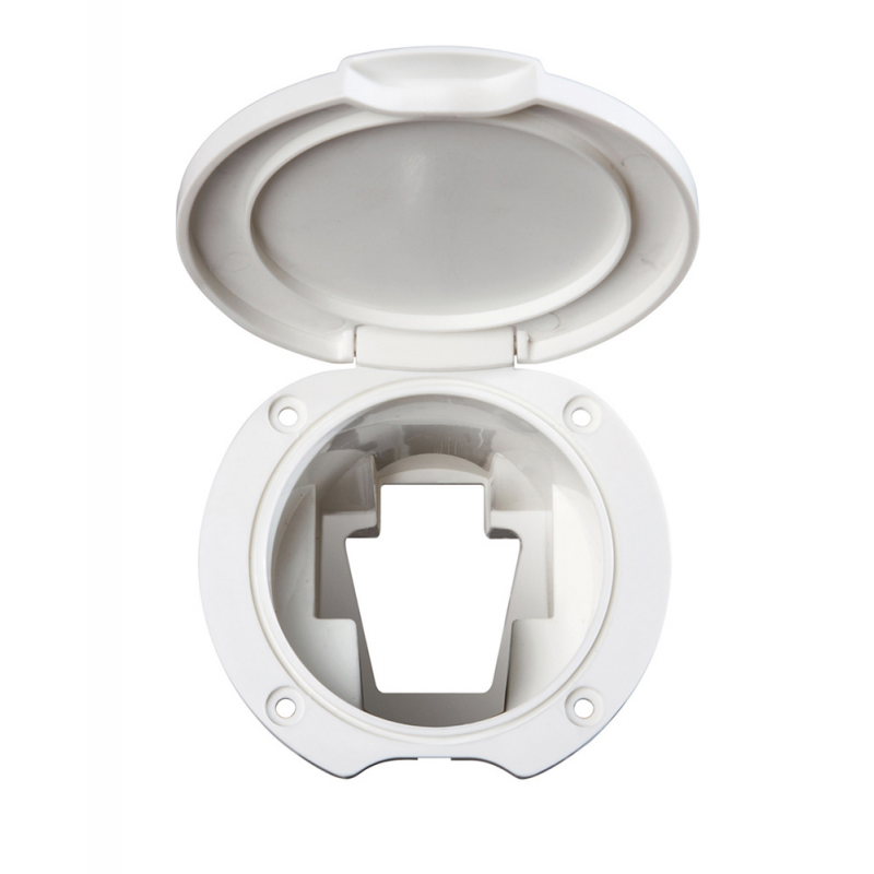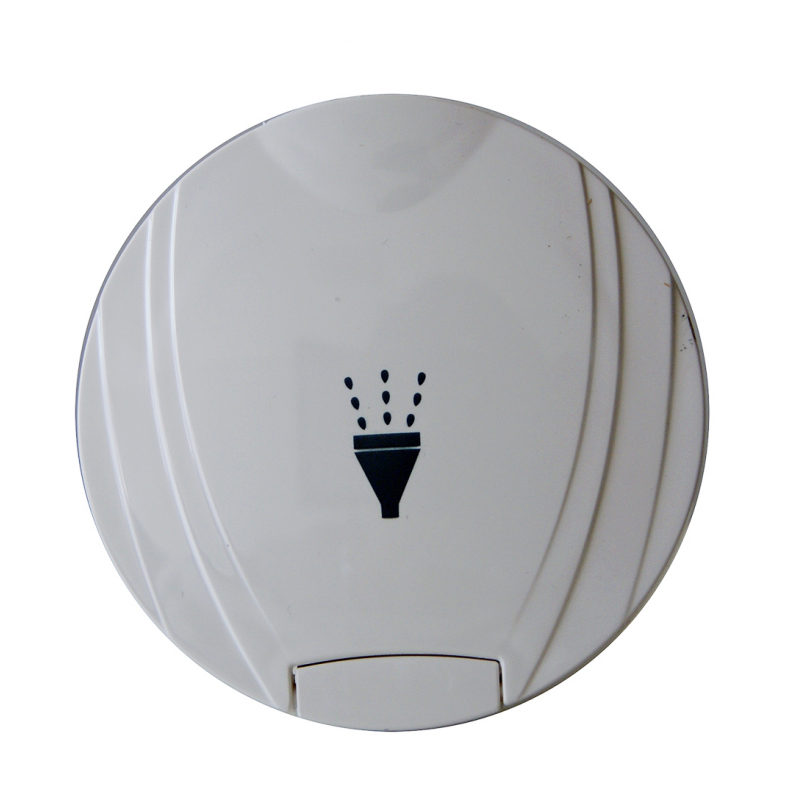 Contenitore per doccetta in PVC biancoad incasso per montaggio orizzontaleo verticale, per art. 24.24202/204/216.Dim. foro incasso Ø mm 73, prof. mm 63,Ø esterno mm 98