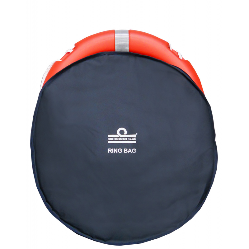 Contenitore in tessuto poliestereimbottito per salvagente anulareVirgo (art. 10.10004) o similari.Apertura con cerniera e fissaggioa pulpito e battagliole con cinghieregolabili