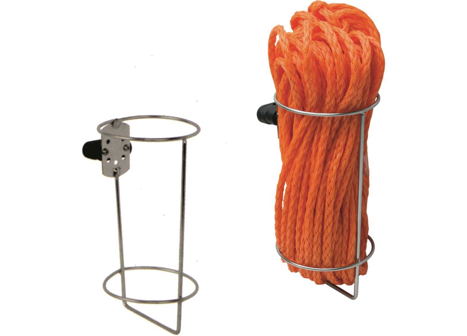 Contenitore a cesta per sagole di salvataggio in filo di Acciaio Inox. ↵Attacco a parete e a tubo ø 22<>25mm.