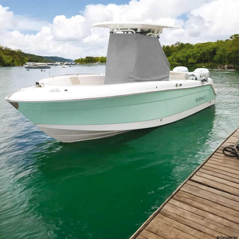 Facile da posizionare, si attacca sotto il T-Top. Copre sia la console che il sedile guida. Chiusura completa tramite cerniera in nylon. Bande elastiche intorno al sedile e nelle parti sopra e sotto per garantire una buona aderenza. Tessuto in poliestere UV resistente 260 gr/m2.