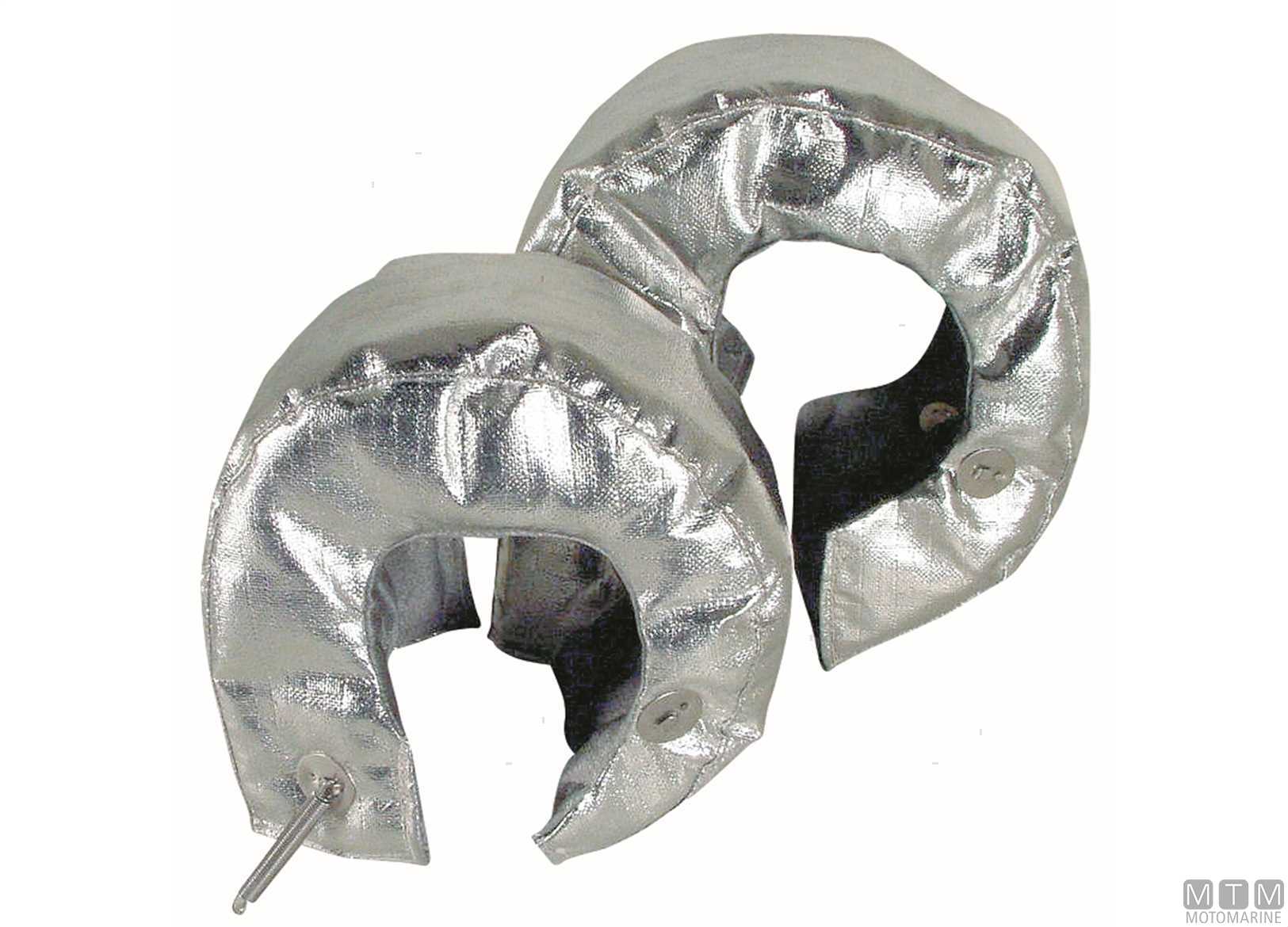 Coperture Termo isolanti in tessuto di Vetro e fibre di Ceramica per turbine motore. ↵Sopportano temperature fino a 800°. ↵Complete di molle Inox per il fissaggio.