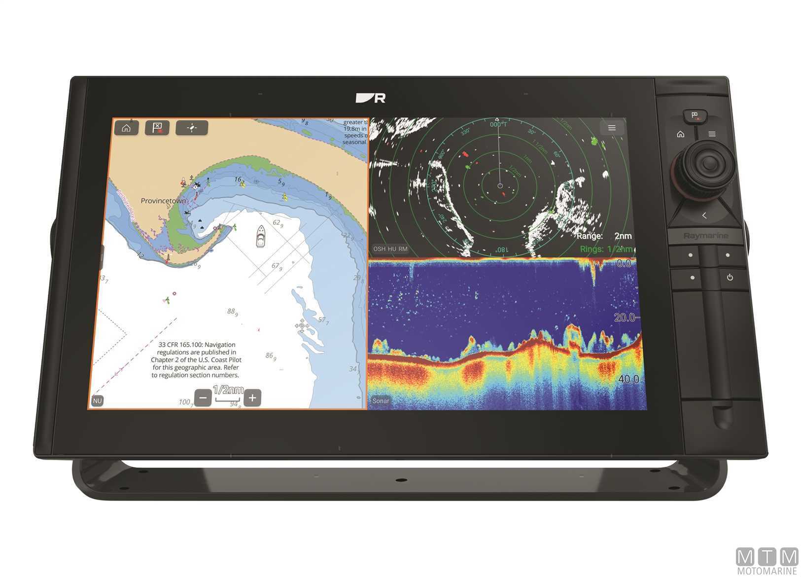 Chartplotter/fishfinder multifunzione Raymarine Axiom2 Pro-RVM con display tutto vetro nano-rivestito HydroTough Touchscreen Hybridtouch a tecnologia LED ad alto contrasto che rende lo schermo visibile alla luce diretta del sole. Utilizzo combinato con touchscreen, manopola e tasti ergonomici. Ecoscandaglio 3D RealVision MAX high definition CHIRP 1000W DownVision e SideVision integrati. Processore di ultima generazione 6-core e interfaccia LightHouse 4. Dotato di antenna GPS integrata, connettività Wi-Fi, NMEA2000, HDMI e 2 slot micro SD. Compatibile con tutta la cartografia Navionics+ e Platinum+.↵Completo di coperchio schermo, cavo alimentazione/dati e kit montaggio su staffa e superficie. Da completare con trasduttore.↵ ↵TD = Trasduttore