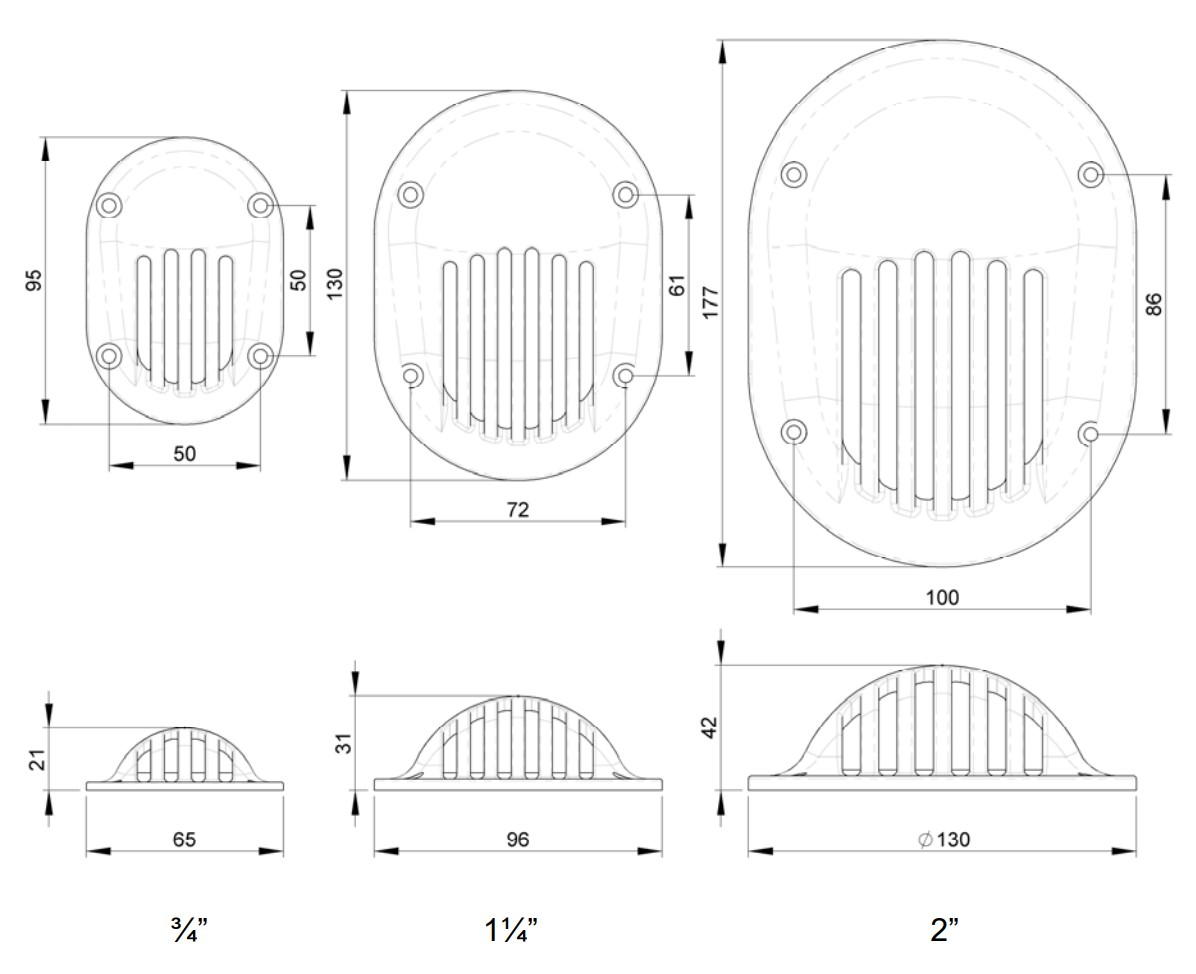 Cuffia scarico a mare da 2"