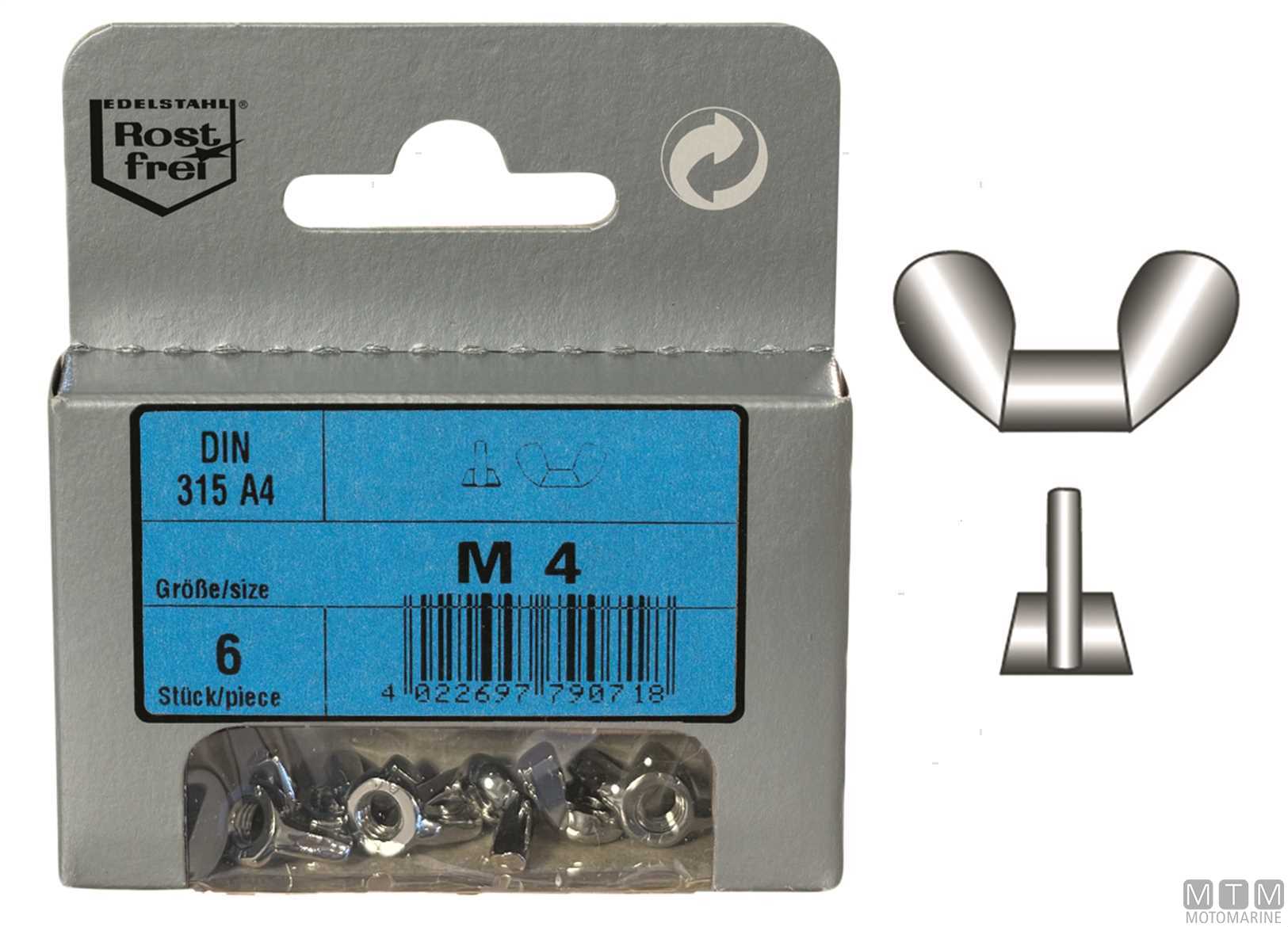 Dadi ad alette DIN 315 in Acciaio Inox A4.↵ In comodi ed eleganti blister.