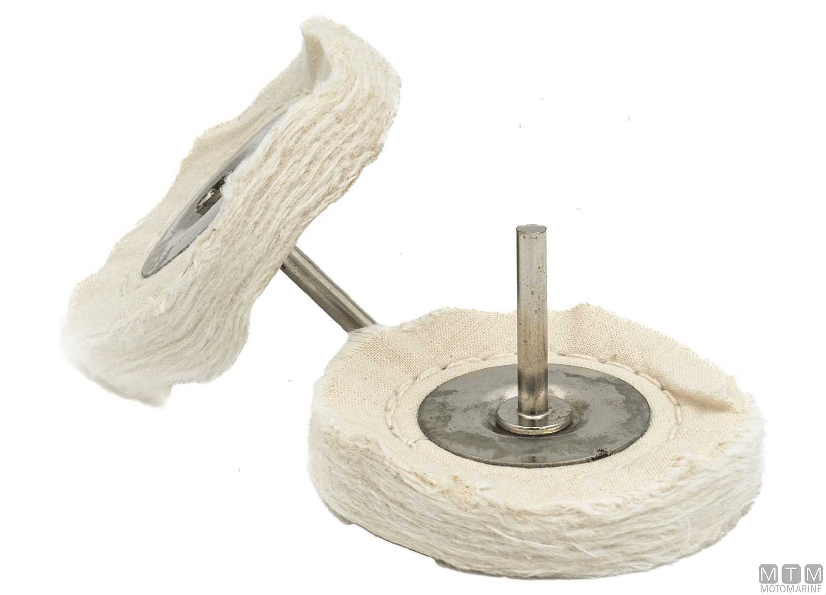 Dischi in cotone con gambo da 6 mm per la lucidatura a specchio di metalli e Acciaio Inox. Da utilizzare con pasta abrasiva.