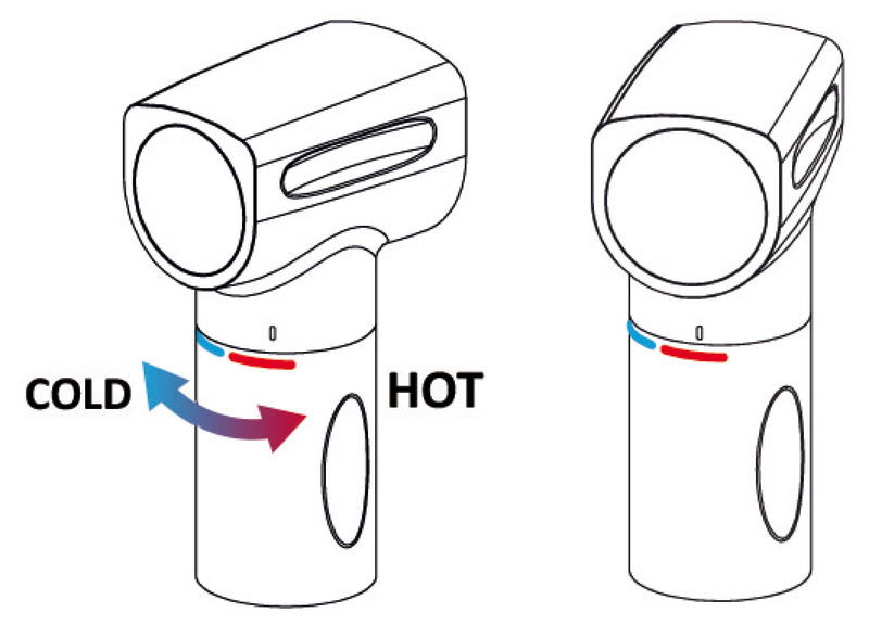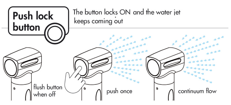 Regolazione dell’acqua calda e fredda gestita tramite la rotazione del corpo della doccetta, mentre il flusso è regolato da un bottone push lock che consente di bloccare il getto d’acqua ed evitare sprechi.