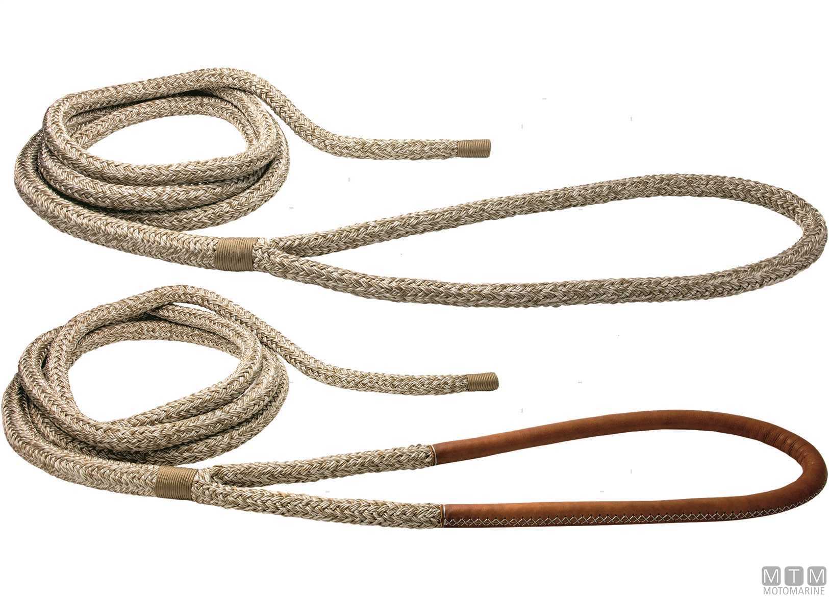 Treccia da ormeggio pronta con gassa impiombata e rifinita a mano. La gassa viene fornita semplice o con rivestimento in morbido cuoio trattato per l'ambiente marino con cuciture in Dyneema. La coda terminale viene anch'essa cucita e rifinita a mano per evitare imperfezioni. Robustissima e morbida, lavorazione a 16 fusi in Poliestere alta tenacità. La guaina è costruita e trattata per la massima resistenza all'abrasione. ↵Non galleggia. daN= carico di rottura in Kg