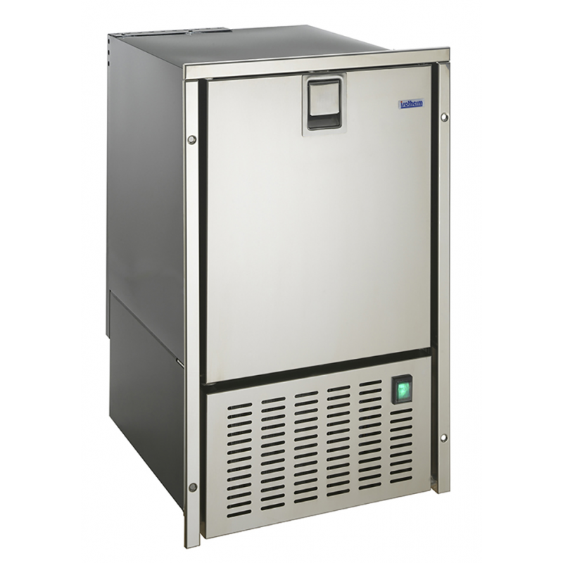 Produttore automatico di ghiaccio bianco a mezza luna con ventilazione frontale. Necessita di allaccio all’impianto idrico di bordo.