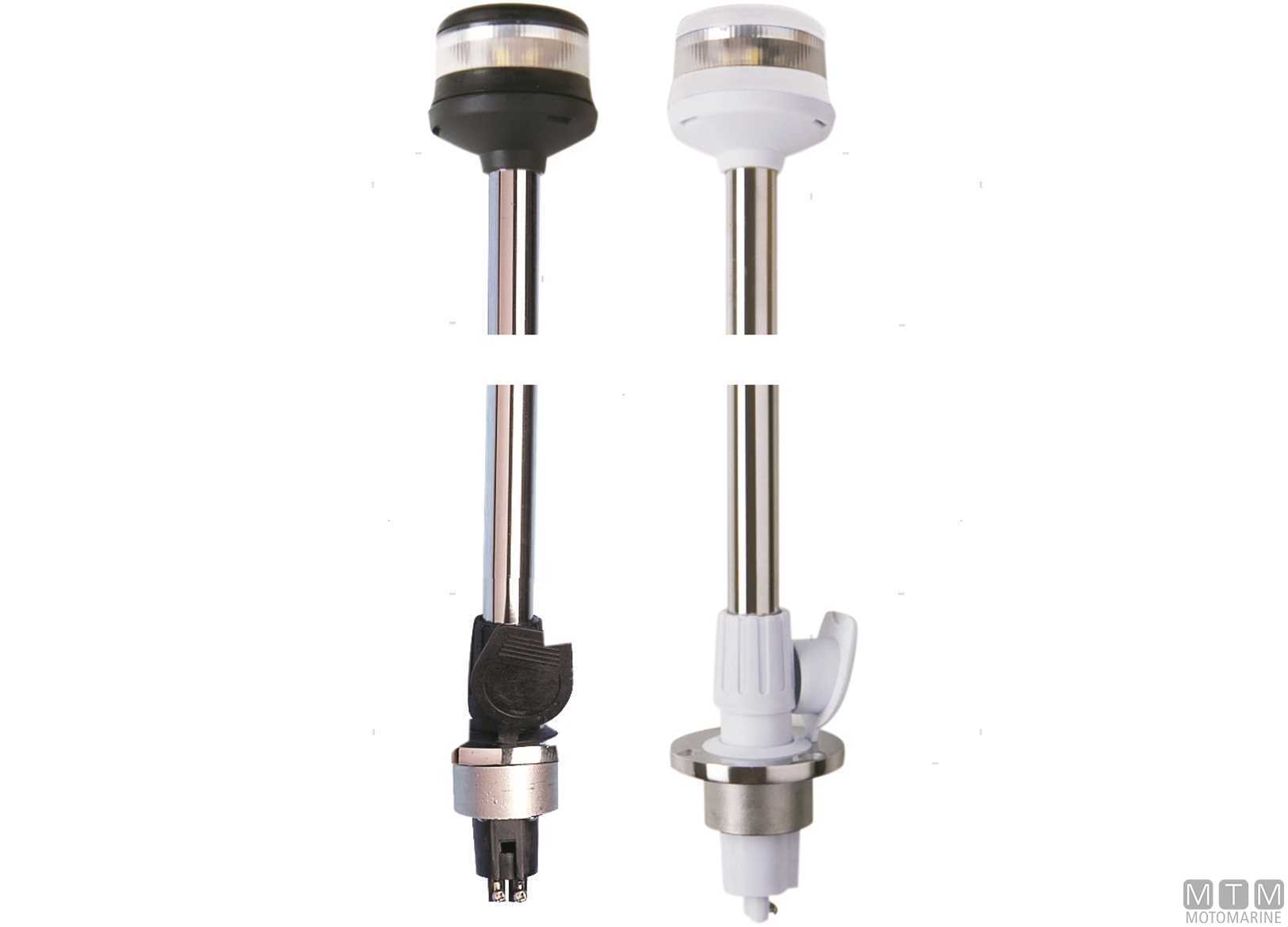 Fanali 360° LED 12/24V su asta in Acciaio Inox con attacco a baionetta e base a incasso.Protezione IP56. ↵Per imbarcazioni fino a 20 metri.