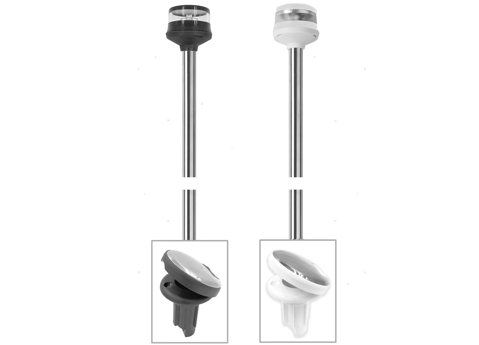 Fanali 360° LED 9-32V su asta estraibile in Acciaio Inox AISI316 con base a incasso con coperchio. Protezione IPX7, certificati R.I.Na. per imbarcazioni fino a 20 metri.