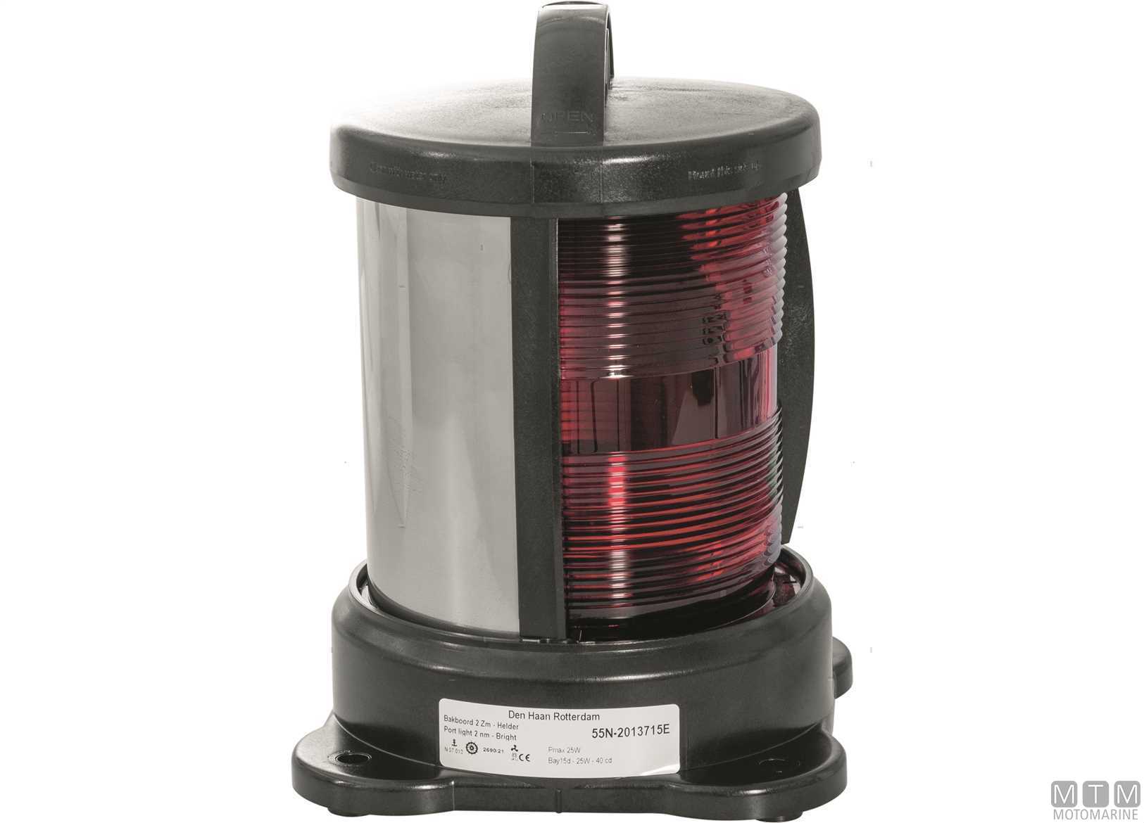 Fanali di navigazione DHR per imbarcazioni fino a 50 metri. Stagni, amagnetici, con corpo in Policarbonato caricato e lenti antiurto Fresnel. Da completare con lampadina BAY15D. Certificati Bureau Veritas MED 2014/90/EU e conformi COLREG/IMO/EN/IEC.