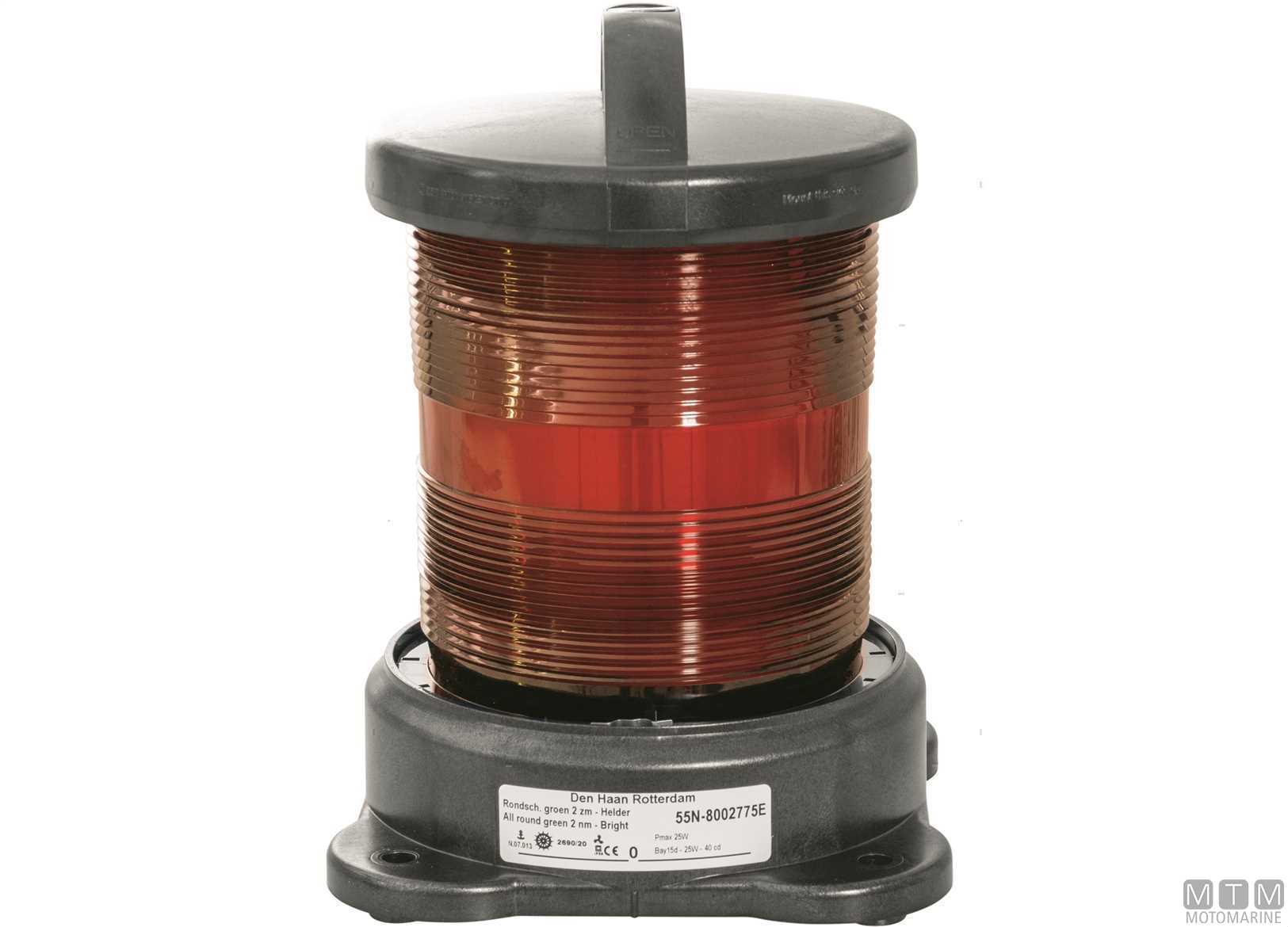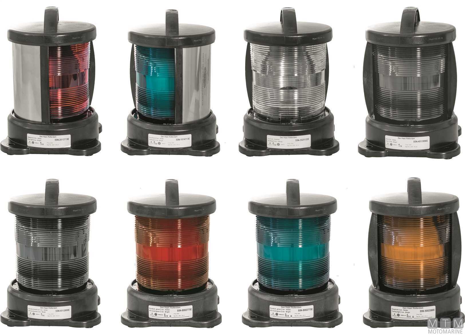 Fanali di navigazione DHR per imbarcazioni fino a 50 metri. Stagni, amagnetici, con corpo in Policarbonato caricato e lenti antiurto Fresnel. Da completare con lampadina BAY15D. Certificati Bureau Veritas MED 2014/90/EU e conformi COLREG/IMO/EN/IEC.