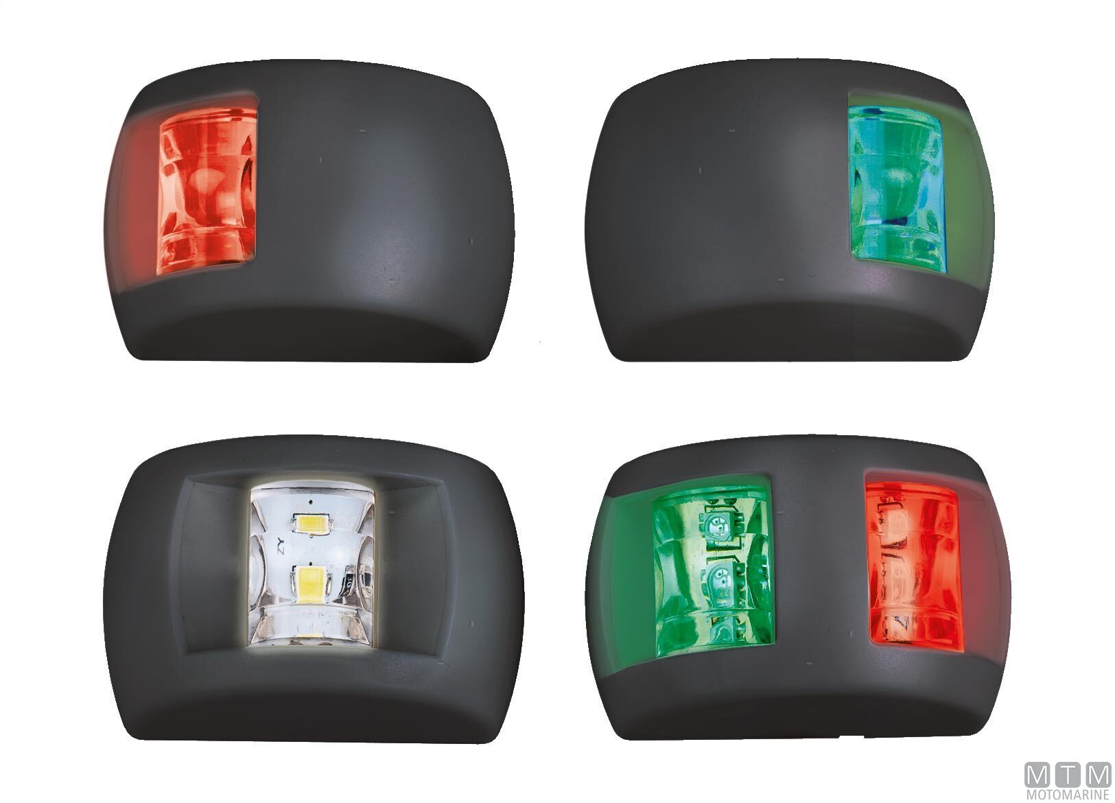 Fanali di navigazione LED 12V molto luminosi compatti in plastica. Consumo 1.5W, dimensioni 70 x H45 mm.