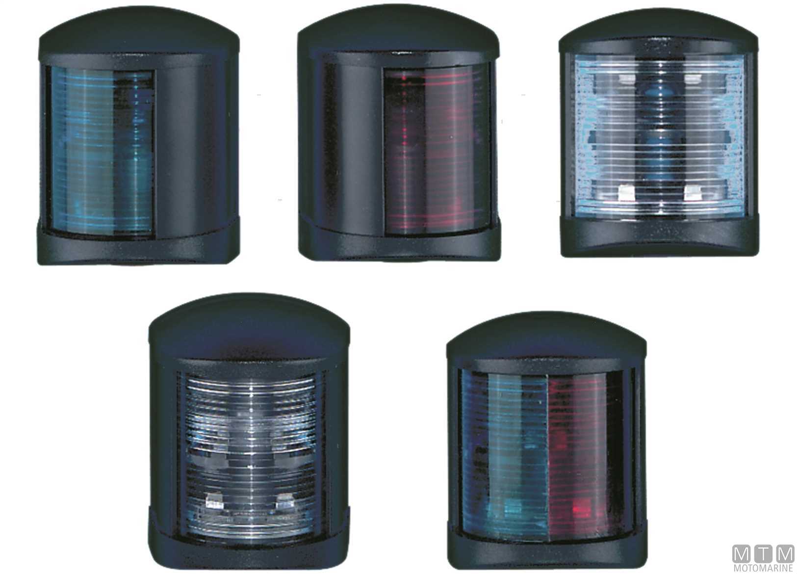 Fanali di navigazione medi. Corpo in Plastica Nera. Dimensioni 58 x H74 mm.