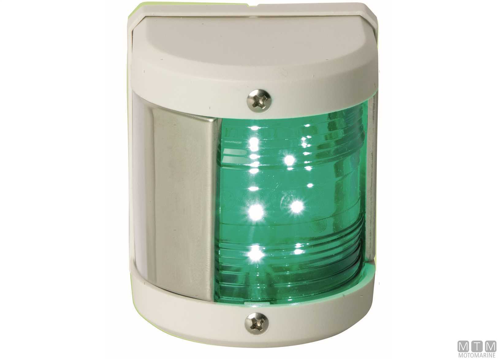 Fanali di navigazione LED 12V medi in Plastica con guance in Acciaio Inox. ↵Consumo ridotto 0,6W. Dimensioni 65 x H75 mm.